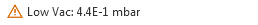 An information message (not interactive), indicating that the low vacuum pressure is currently not at its optimum level.