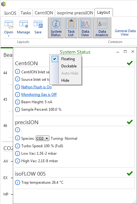 Figure 9-24: System Status Panel displaying interactive information messages for the isoprime visION