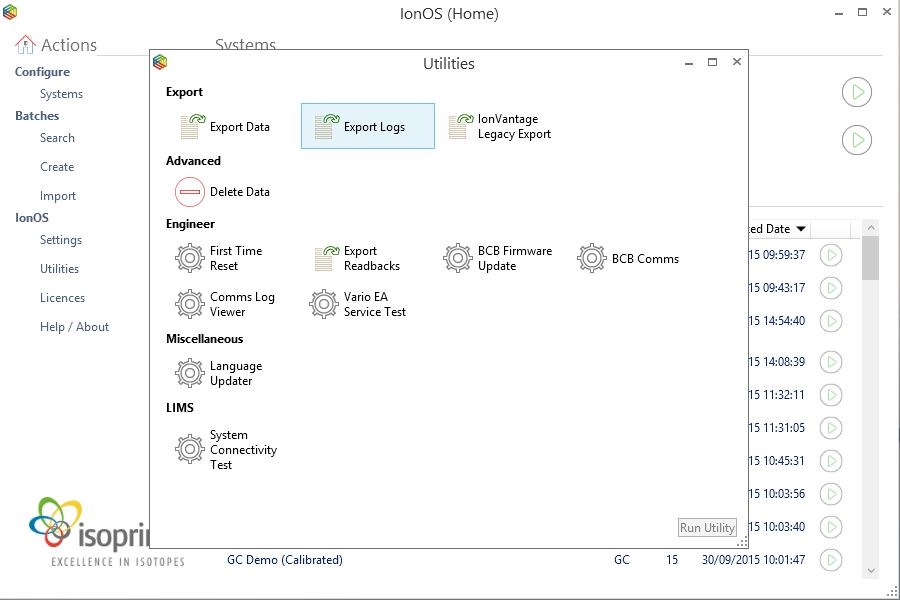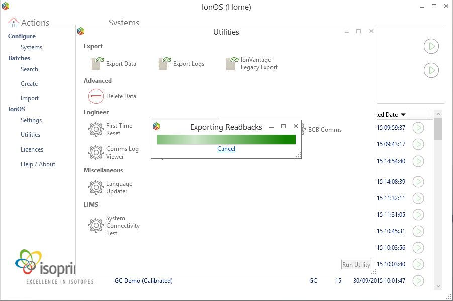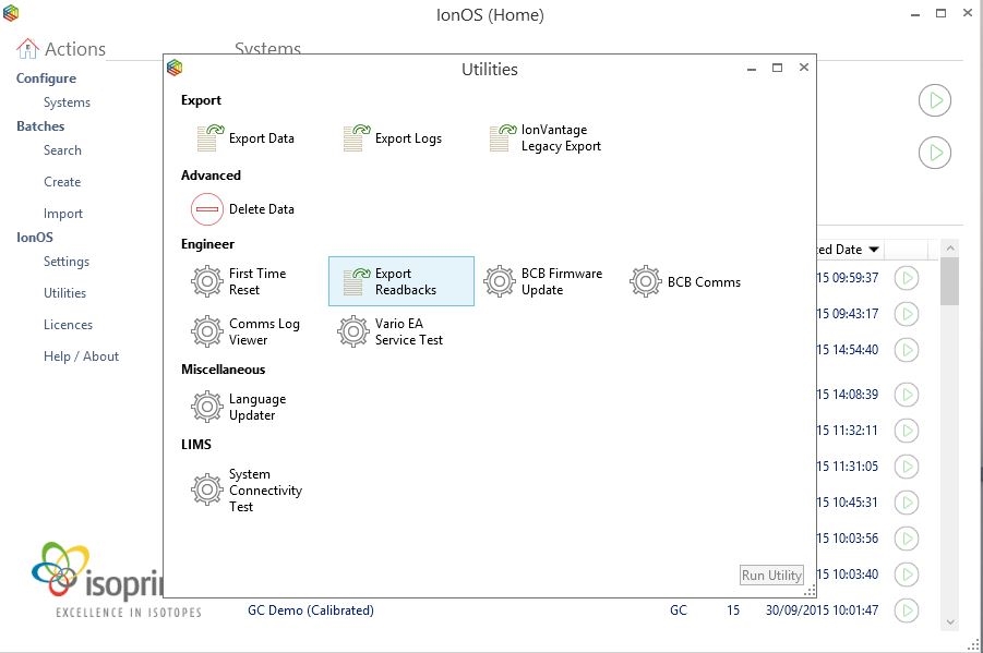 Select the Export Readbacks utility within IonOS