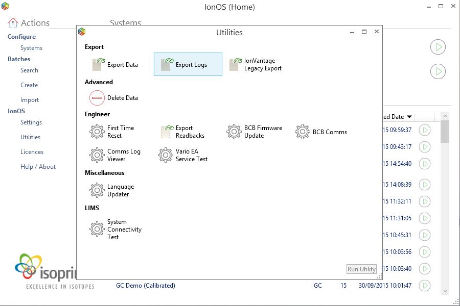 Select Actions > IonOS > Utilities