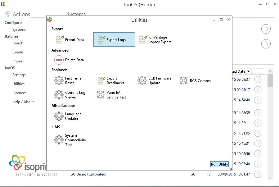 Run the “Export Logs” utility (double click or select and click “Run Utility”)