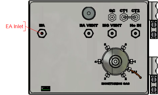 The measuring gas output from the EA 'measuring gas outlet' must be connected to the input 'EA inlet' of the isoprime precisION IRMS. This allows for sample transfer from the EA to the IRMS via the centrION.