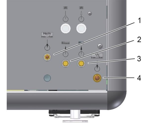 - Connect the oxygen supply line to the oxygen gas inlet (4).