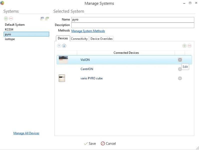 Click the Edit Settings button next to the isoprime visION / precisION.